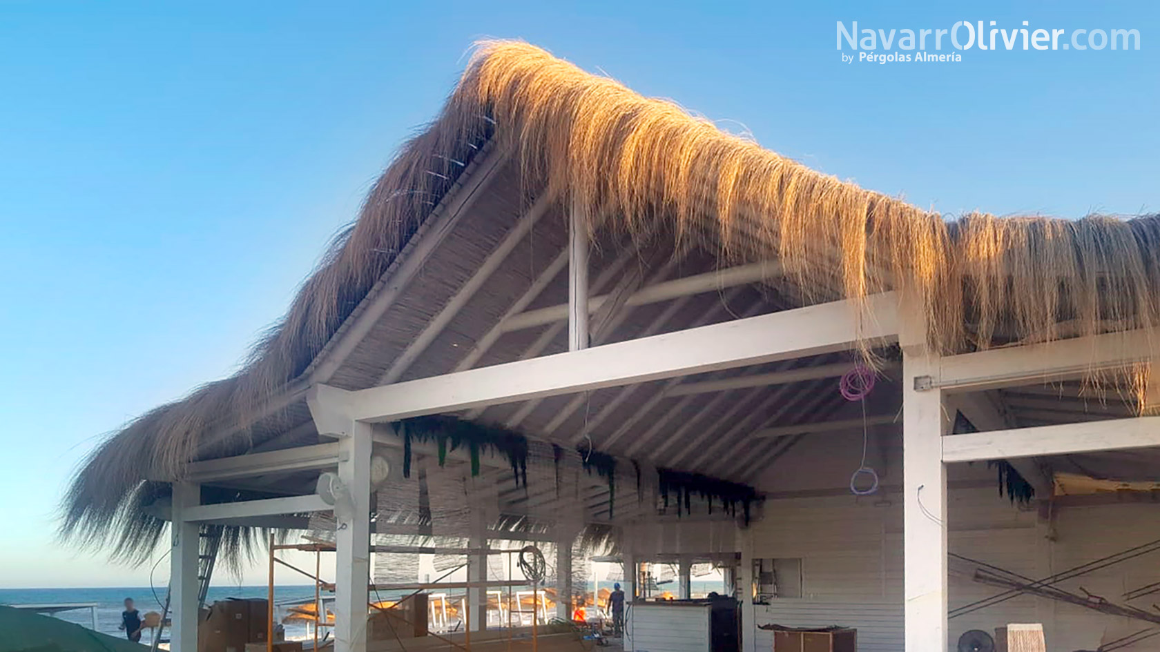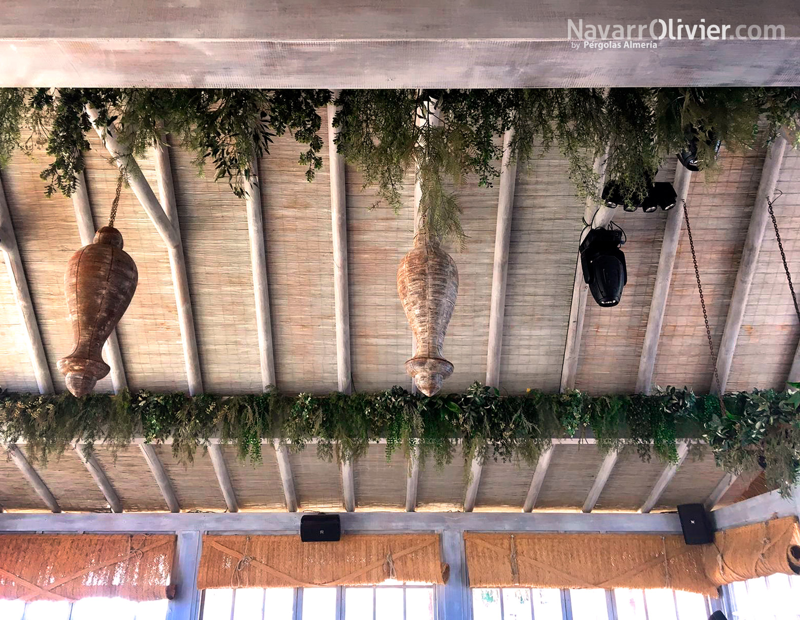El exterior, la cubierta está impermeabilizada y revestida en carritx natural que le aporta calidez y alto valor decorativo.