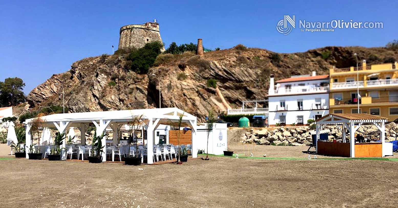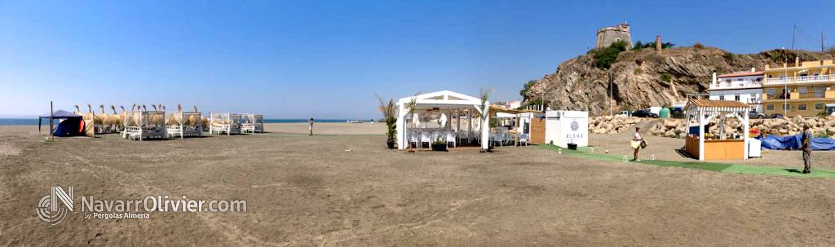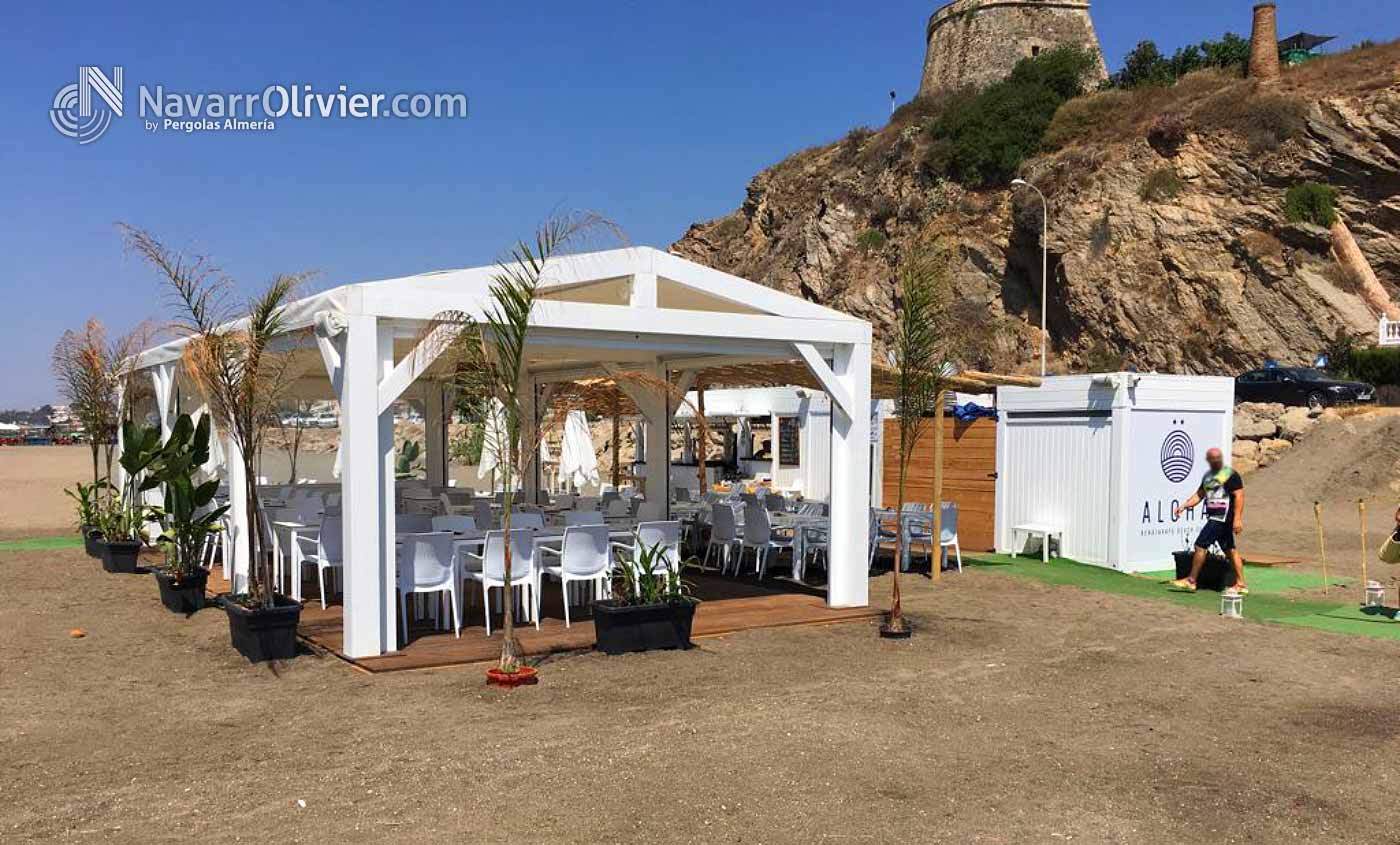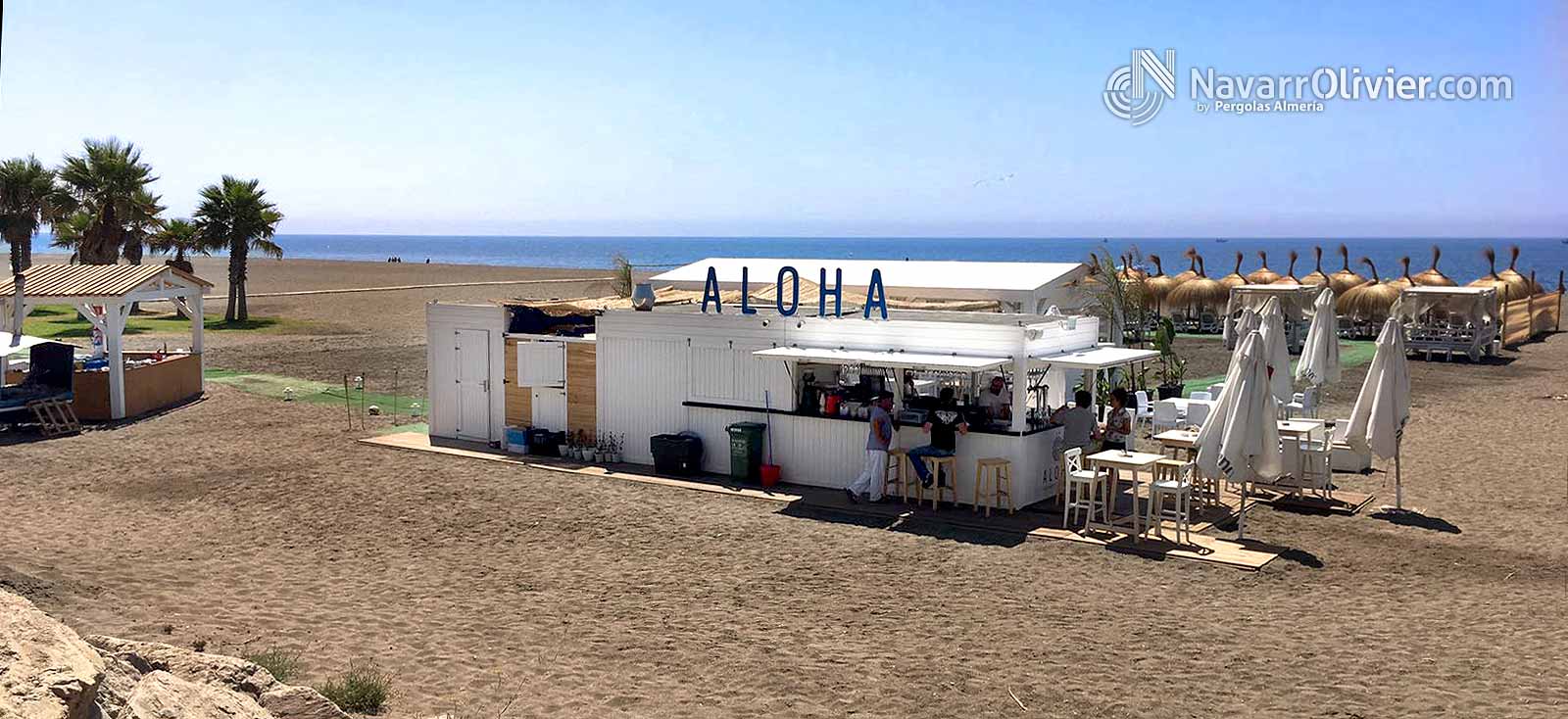 Chiringuito modular construido en madera para exterior, Aloha Playa Benajarafe, Vélez-Málaga.