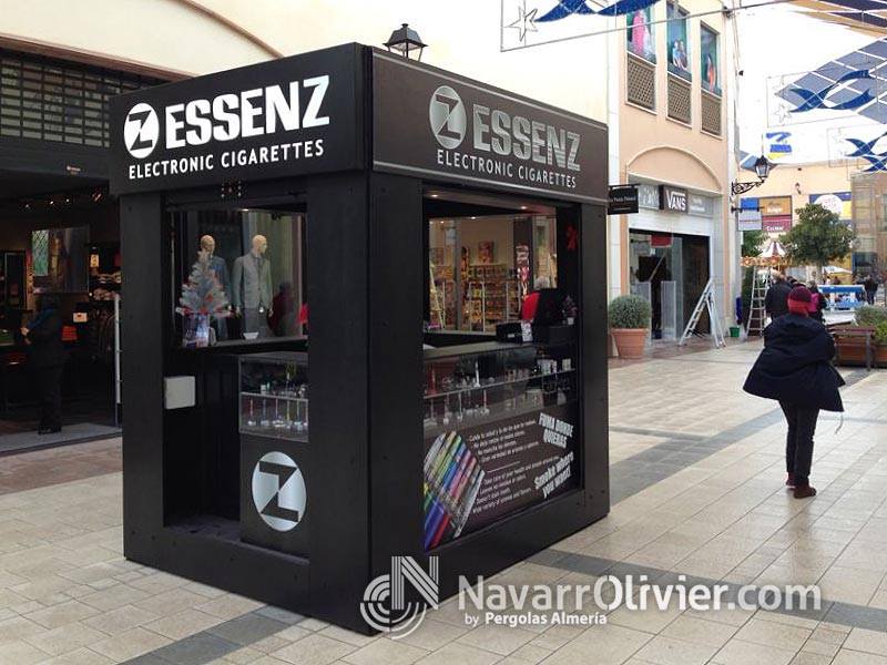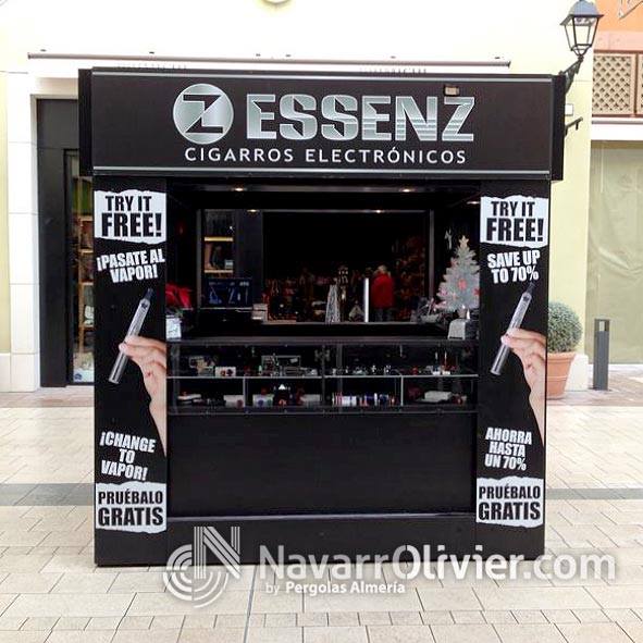 Stand modular transportable para punto de venta directa de cigarrillos electrónicos.