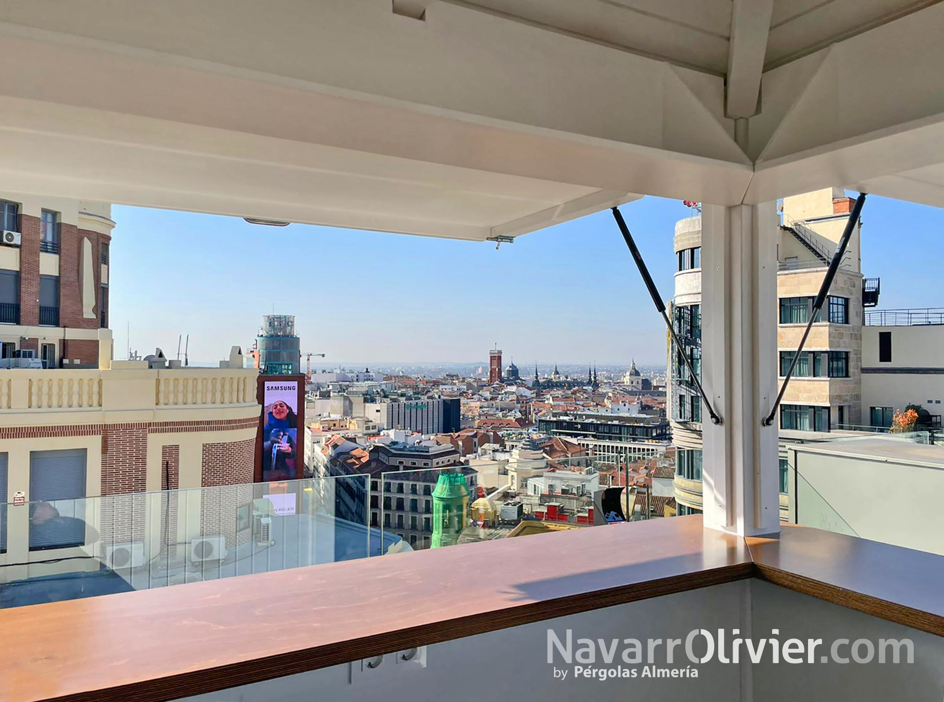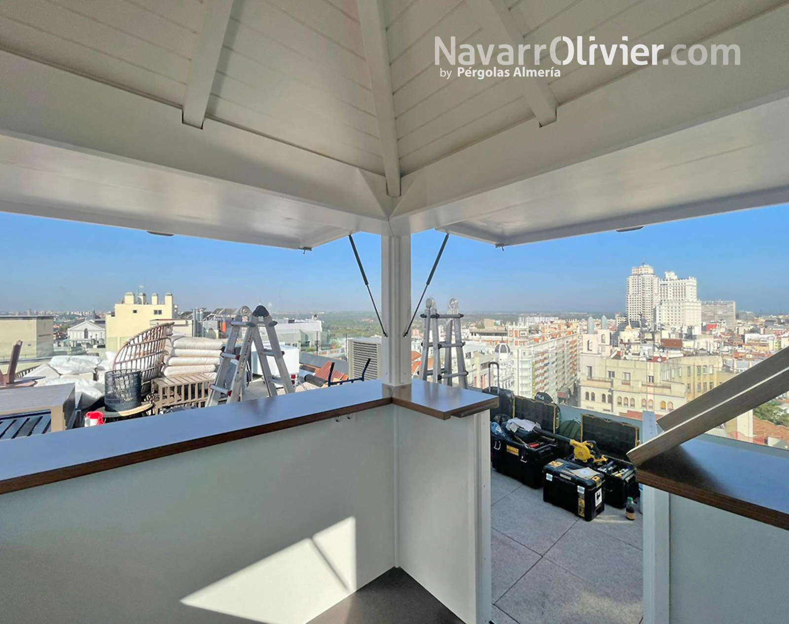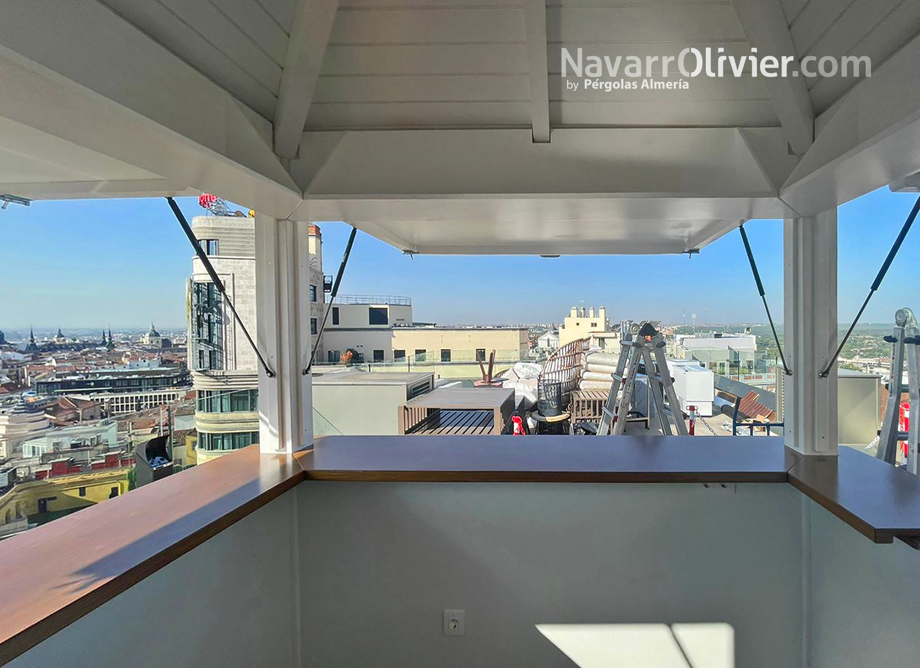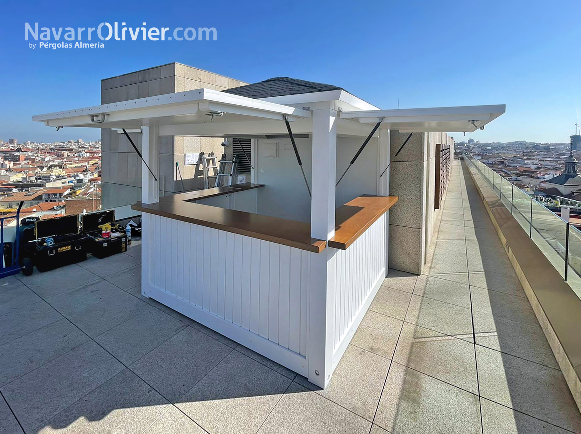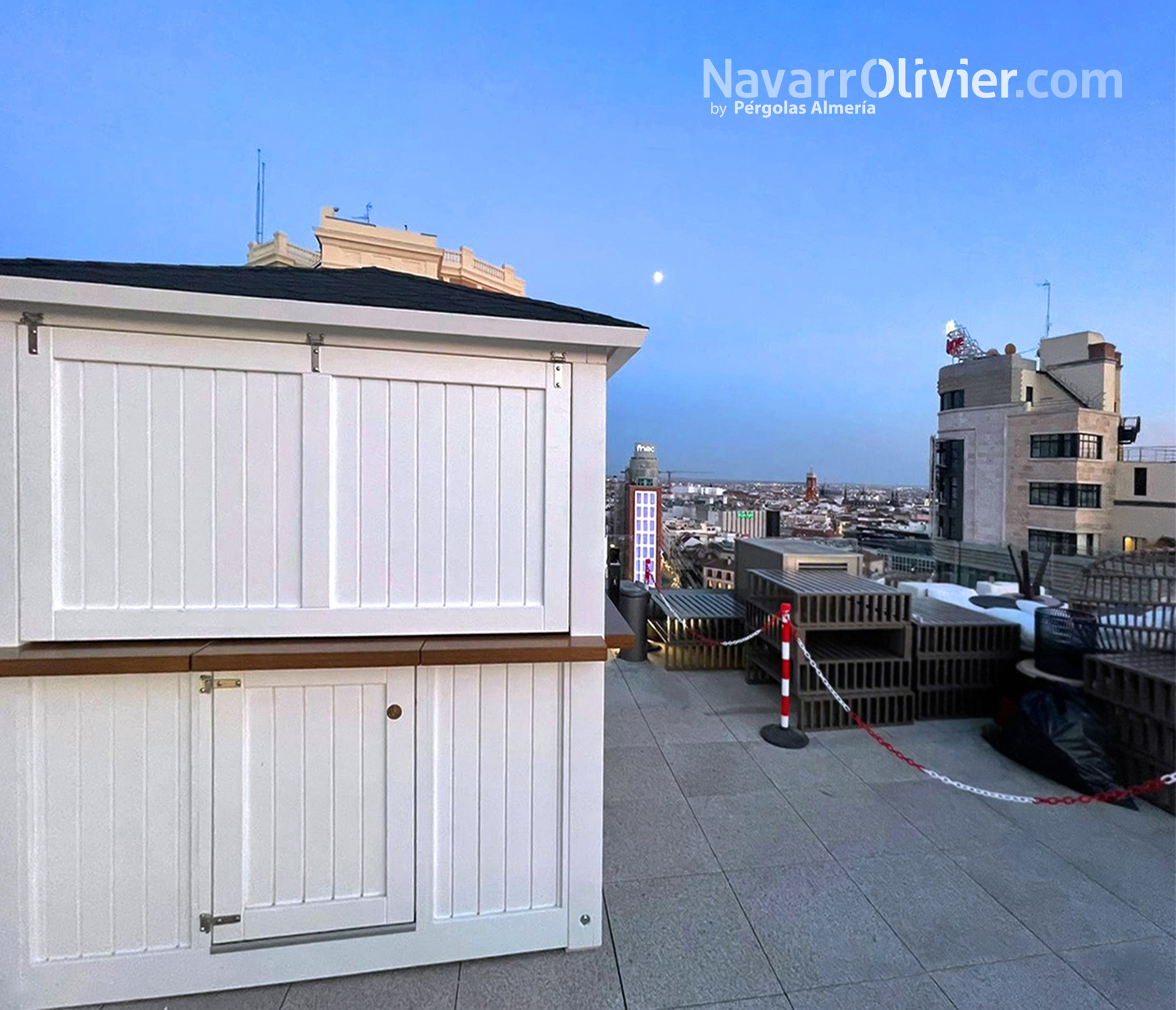 Chiringuito de madera. Skybar para azotea en Gran Vía, Madrid, España.