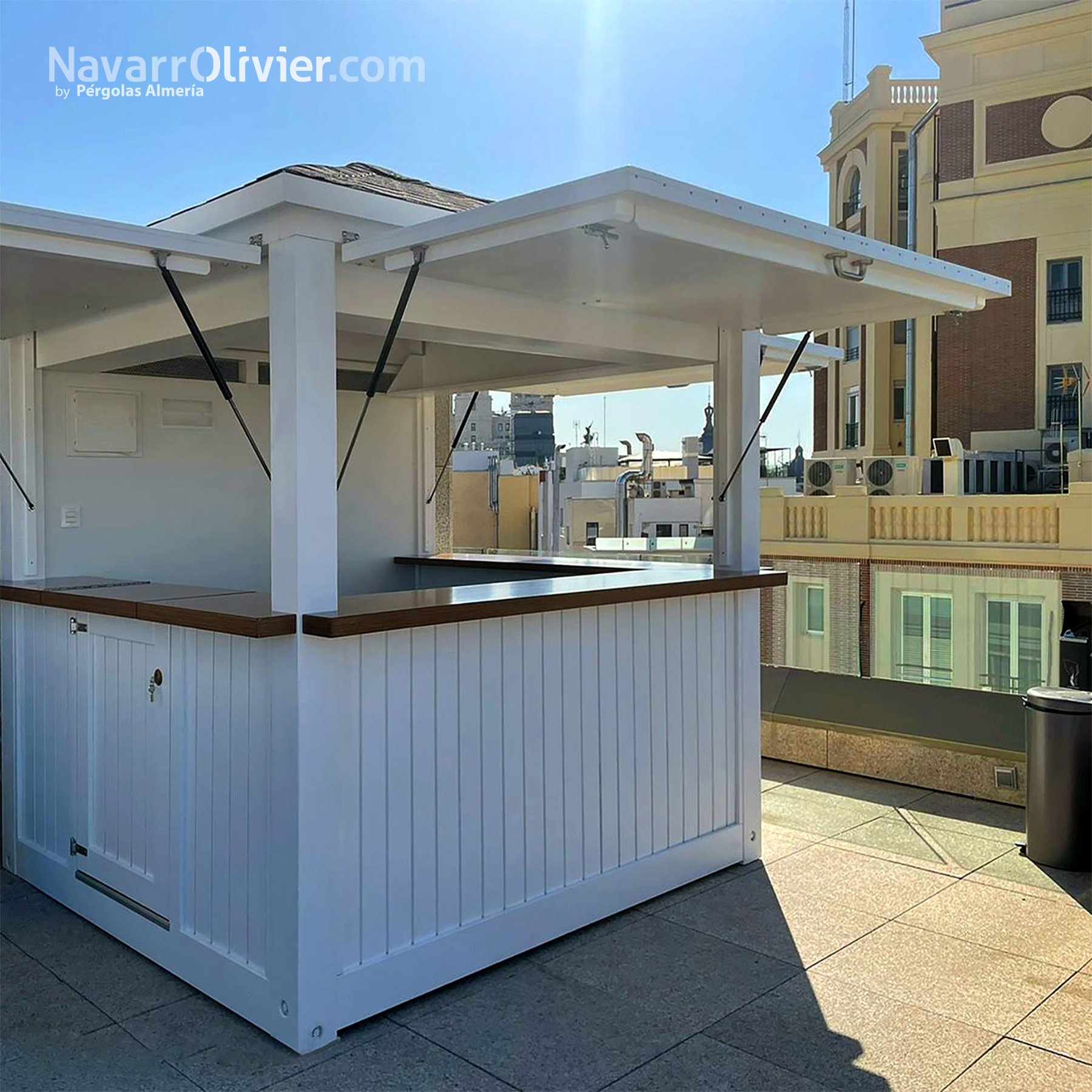 El skybar sigue una tendencia cada vez más en auge en las ciudades. Las terrazas en las azoteas necesitan dar servicio de bar, coctelería, heladería, etc. y en esos casos un chiringuito equipado con instalación eléctrica, barras y cierres de seguridad, es la opción más acertada.