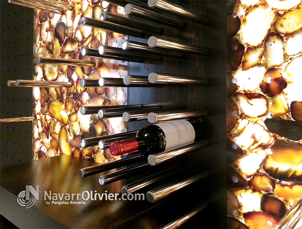 Intervención realizada para Muxacra Arquitectos en el proyecto Casa Beirholm ubicada en Macenas Beach & Golf Resort. La zona afectada es una dependencia pensada como habitación de invitados y bodega personal. Siguiendo con la estética y sistemas constructivos utilizados en otras zonas de la vivienda se construyo un pasamanos continuo en madera lacada en blanco, ademas se fabricaron las puertas mecanizadas en madera para el almacenamiento de vinos, un expositor decorativo madera acabada en color wengue combinada con silestone translucido iluminado por led con estanterías y bárrales de acero para exponer botellas. Para acondicionar la habitación de invitados la carpintería a medida incluye una cama abatible de 2 plazas, que se oculta siguiendo la estética del mobiliario.