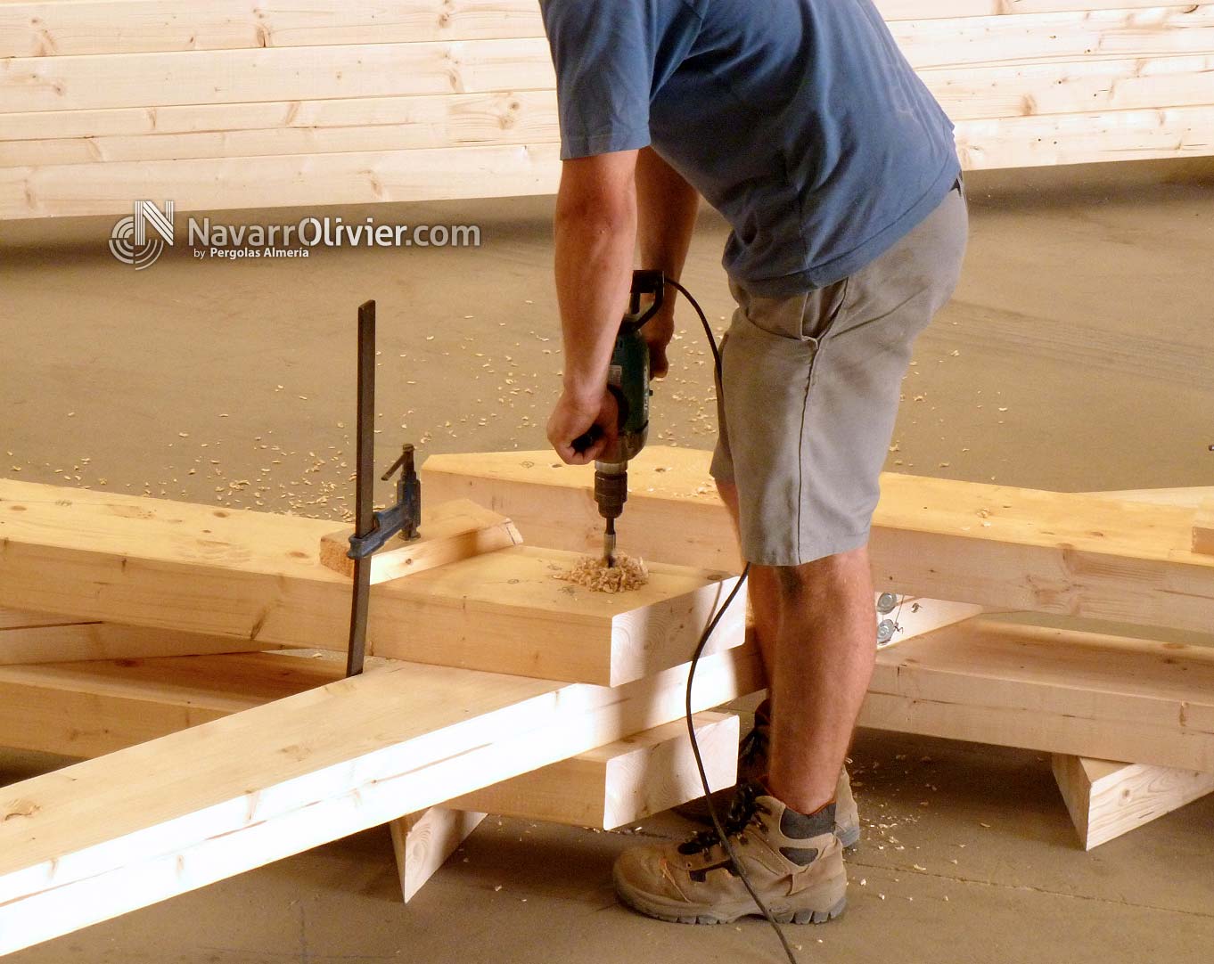 Estructura de madera construidaPilares de madera laminada GL24 de 20x20cm