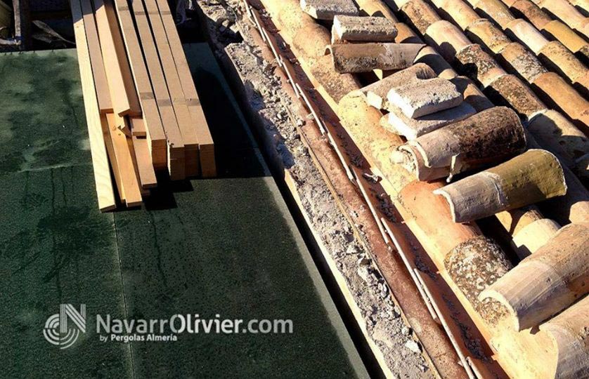 Aireación mediante panel sandwich yeso, núcleo y tablero hidrófugo, listonado para construir la cámara de aire (cubierta ventilada), tablero, thermochip bajo teja y finalmente tejas rústicas envejecidas para integrarse a la antigua construcción.