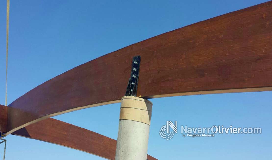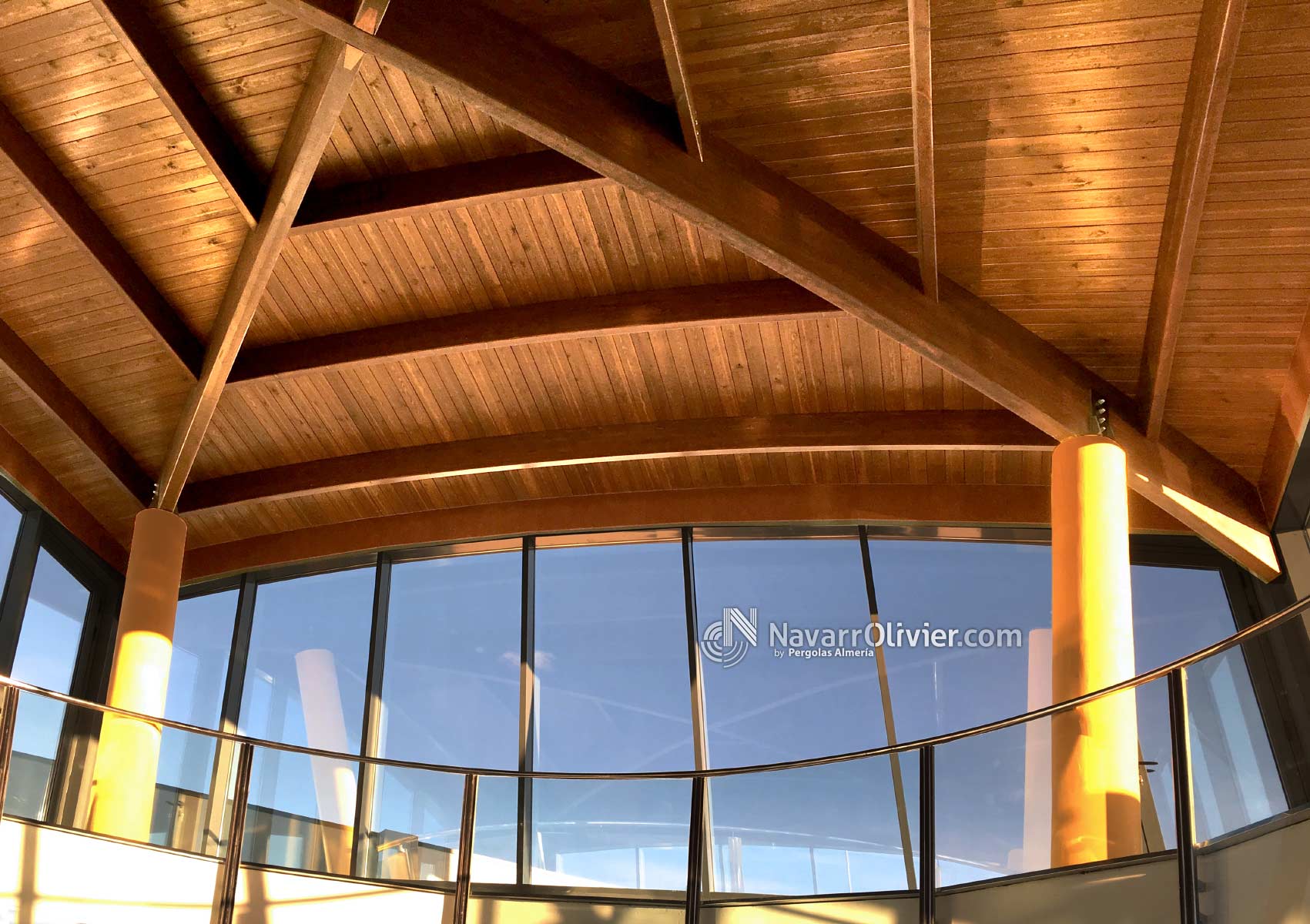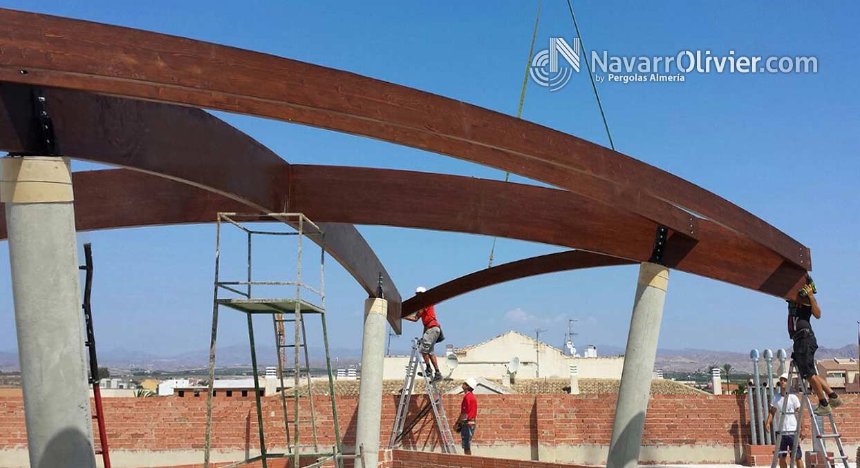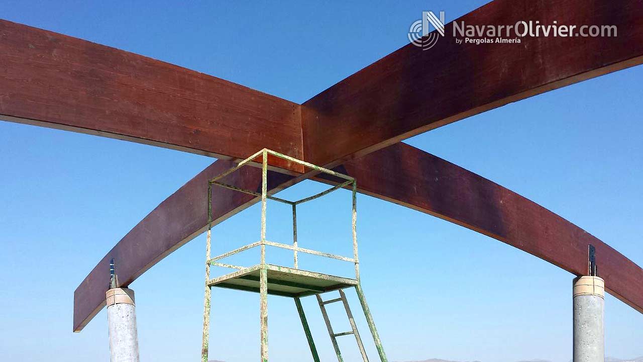 Construcción de cubierta con vigas de madera laminar curva.