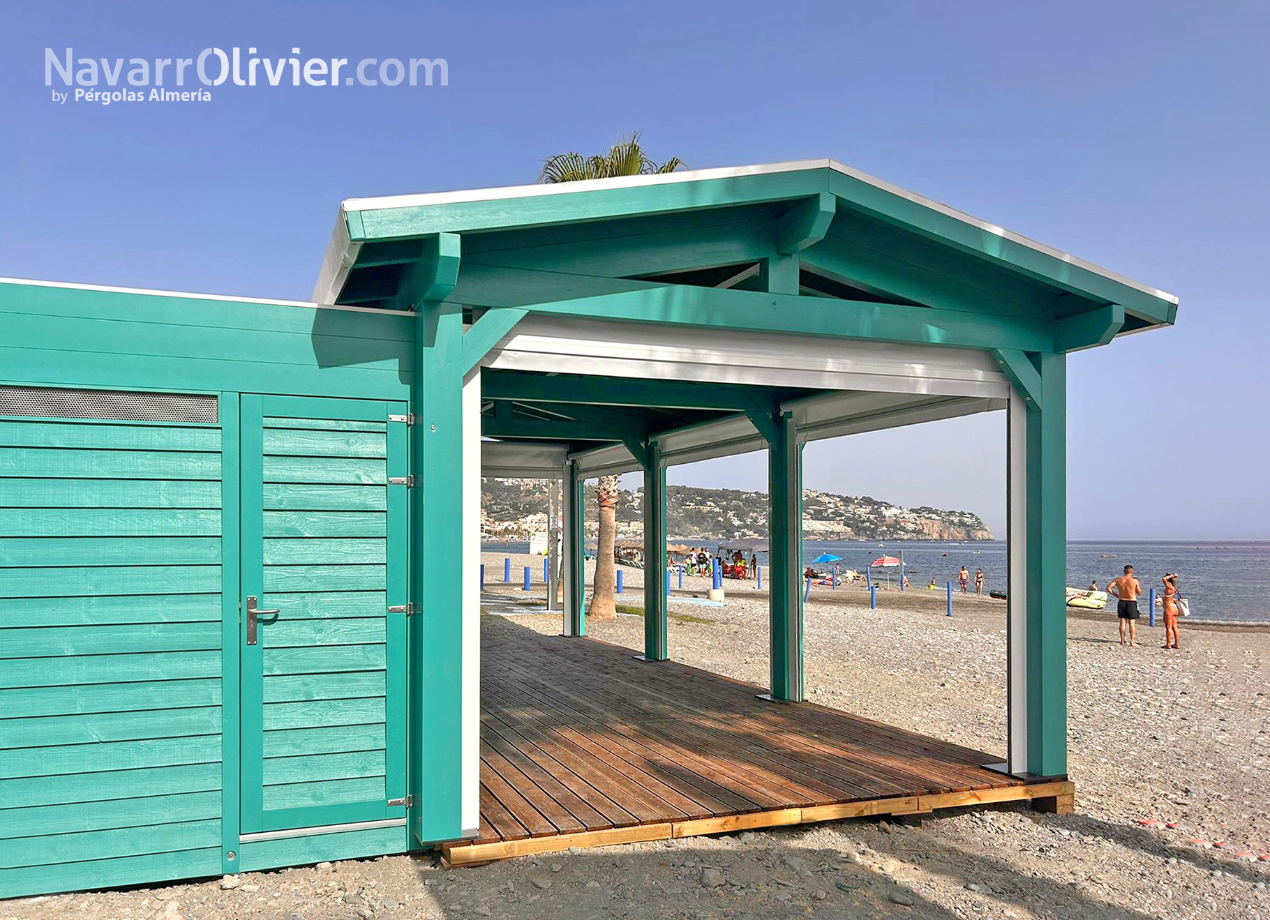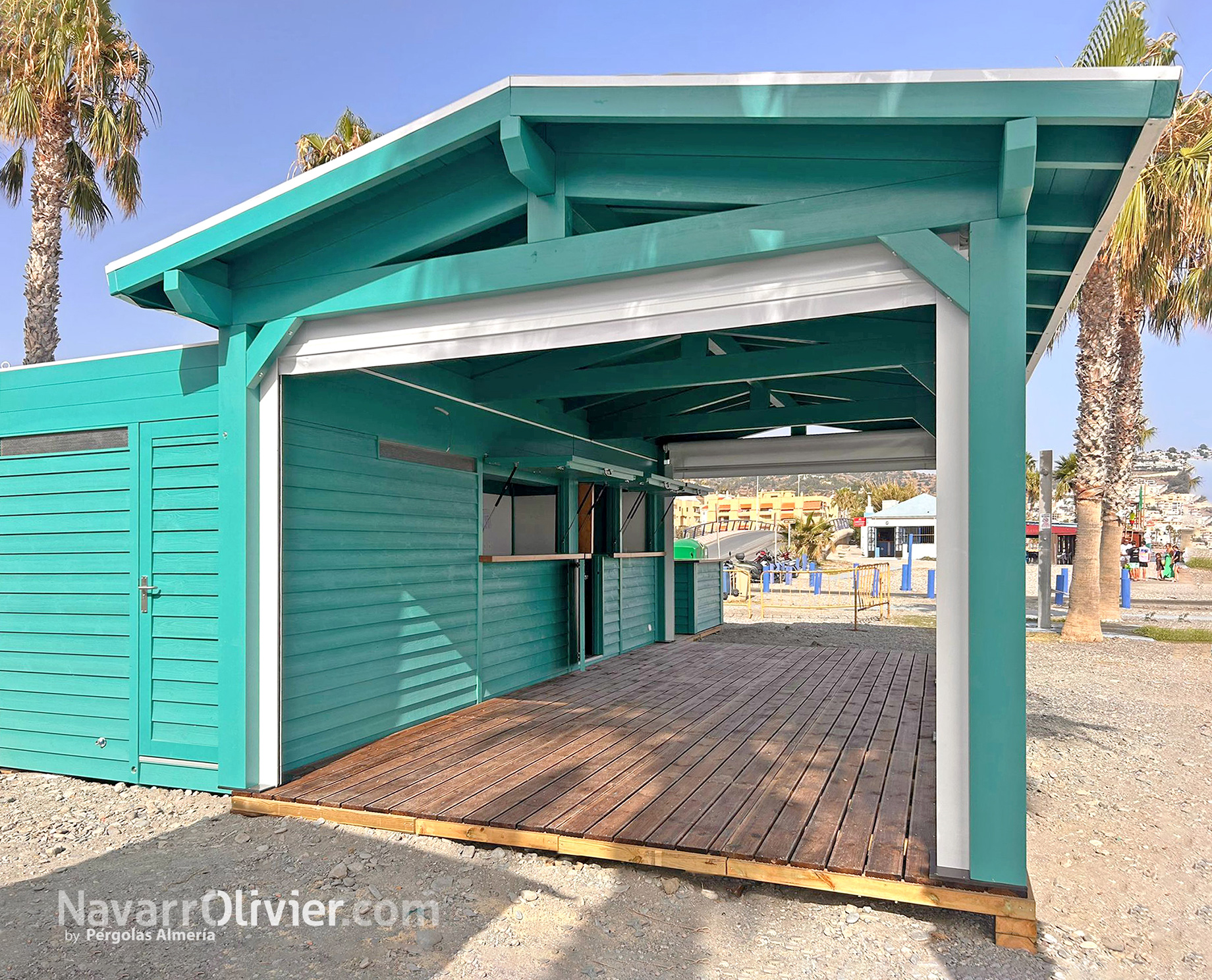 Chiringuito modular de 20 m², con pérgola sobre decck y barra exterior en La Herradura, Almuñecar, Costa Tropical, Granada, Andalucía.