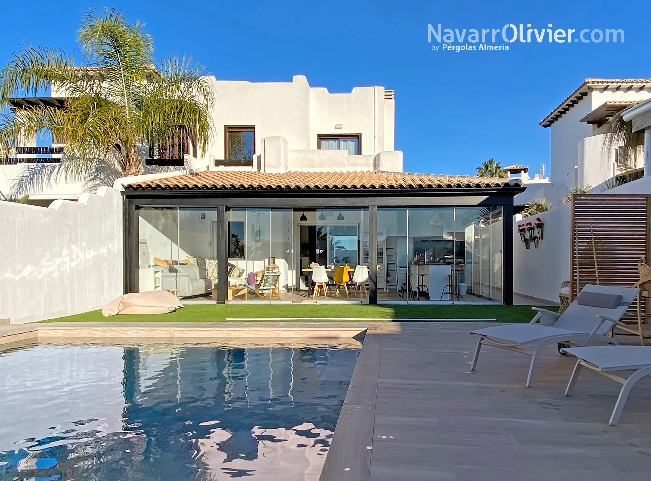 Reforma de vivienda, espacio cubierto con cocina y cerramiento para vivienda unifamiliar en Vera Playa, Almería.