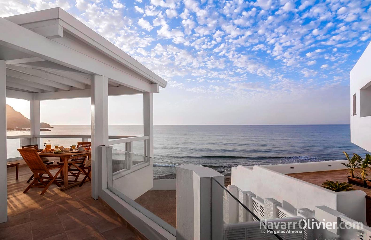 El proyecto de construcción ligera, realizado en colaboración con el estudio de arquitectura de José María Pérez Segura, crea una estancia exterior que aporta resguardo y confort donde disfrutar de vistas idílicas.