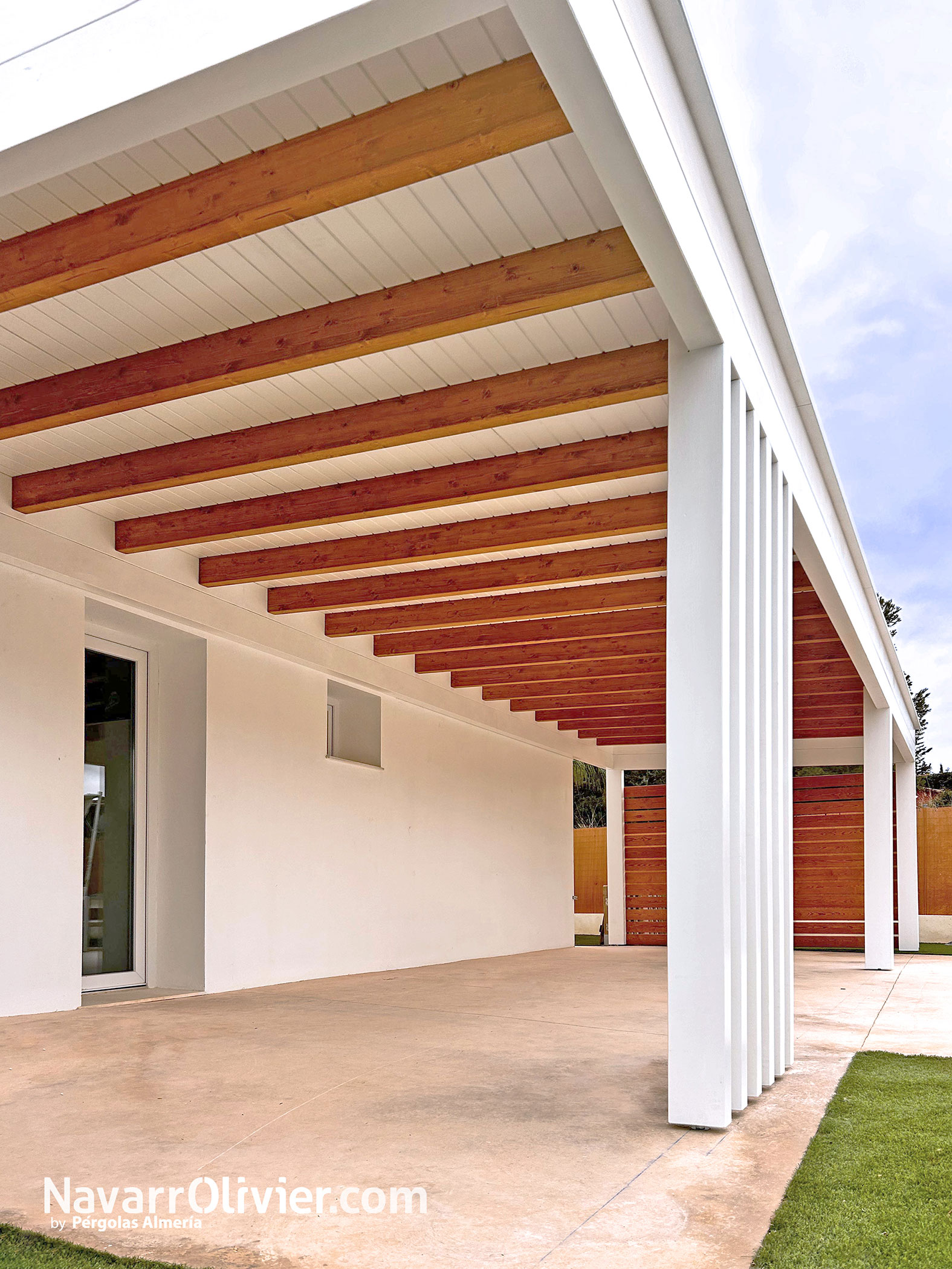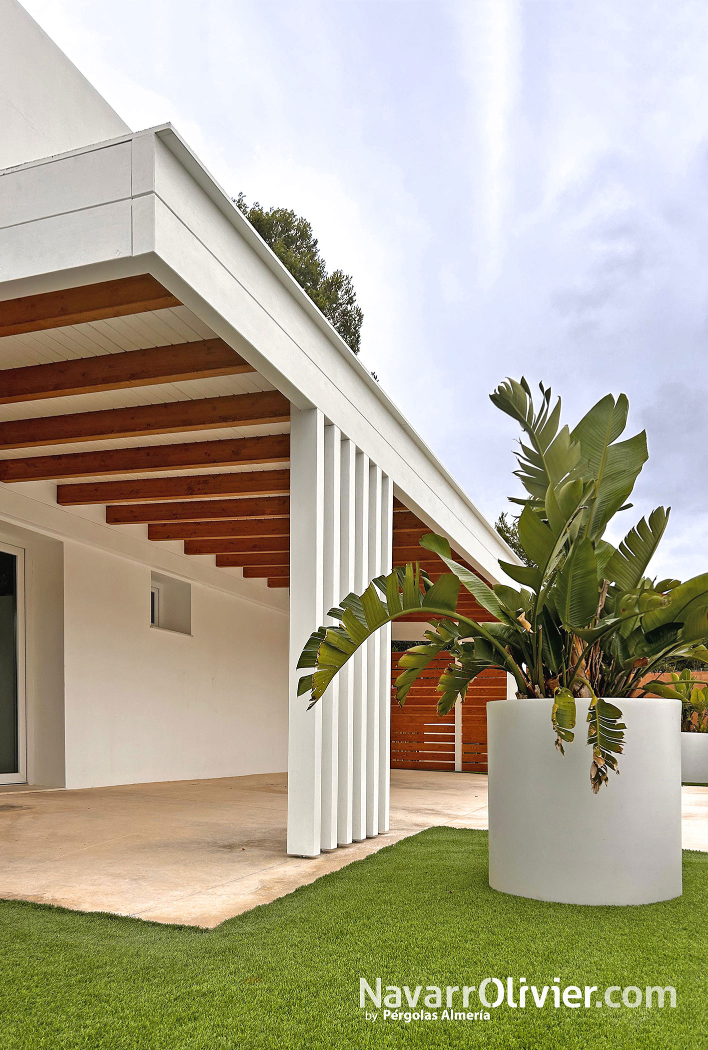 Estas estructuras adosadas, añaden valor estético y funcional a viviendas de estilo contemporáneo o minimalista creando espacios sombreados que aportan un confort climático.