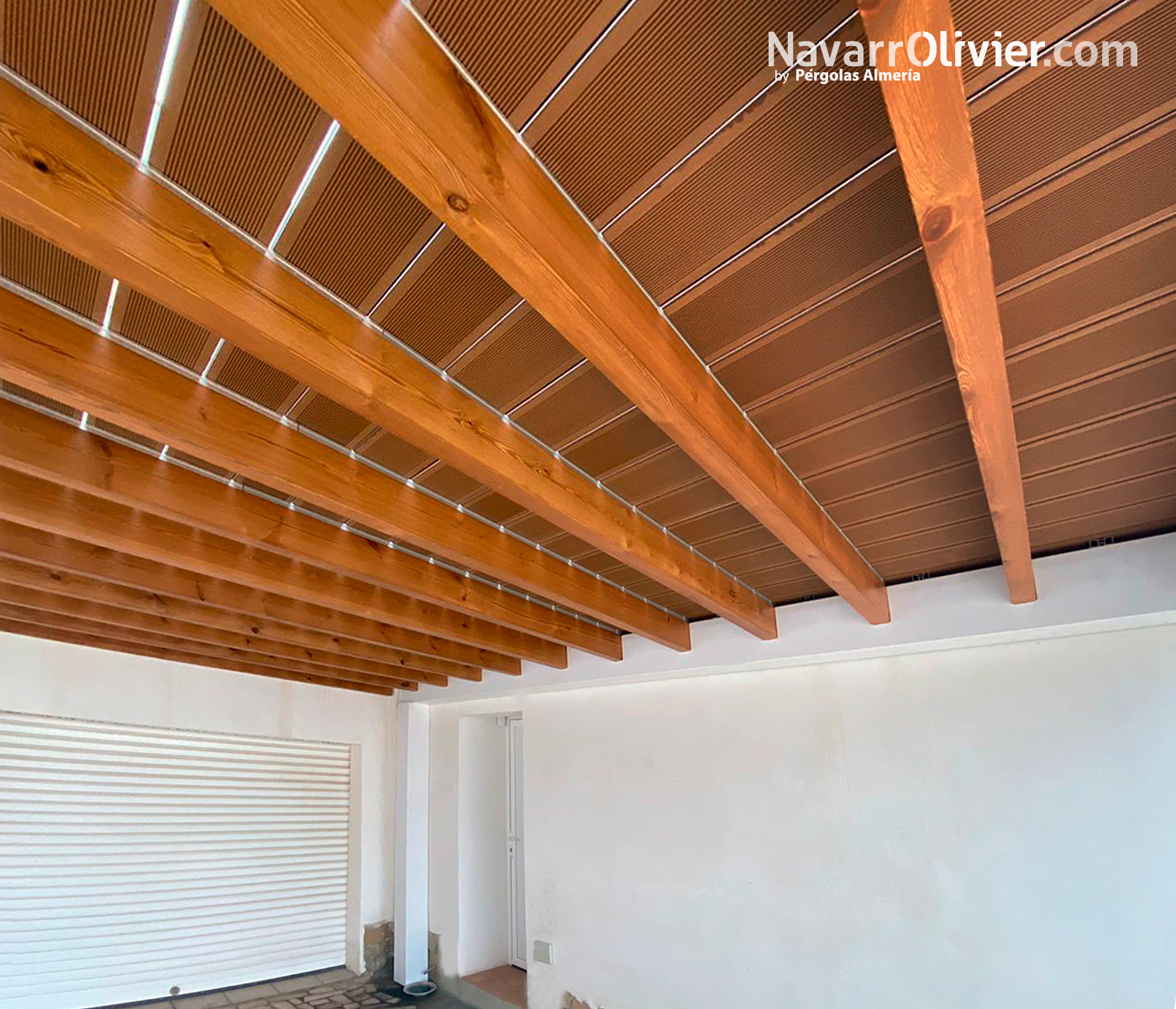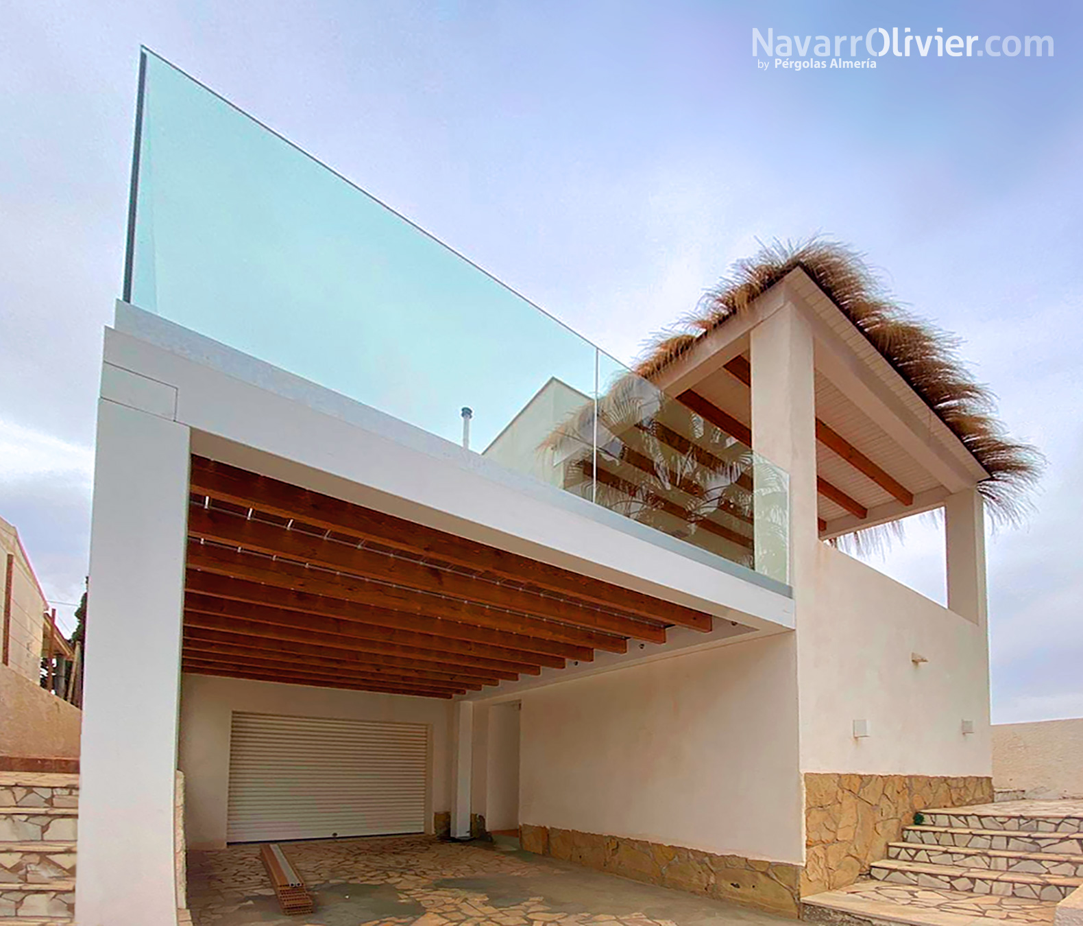 Para llevar acabo este propósito, se construyo un forjado de madera cubriendo el aparcamiento de la vivienda, aportando sombra y protección a este espacio, además de crear una terraza transitable. Sobre el forjado se instaló un deck en tarima sintética que se extiende hasta el balcón de la vivienda.