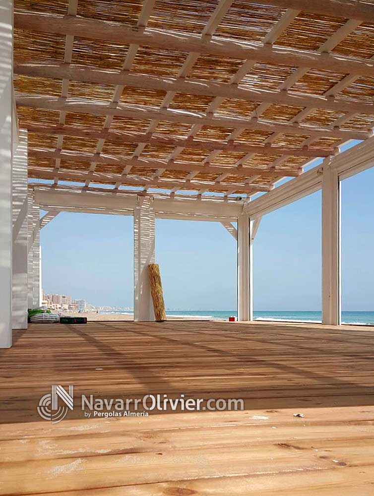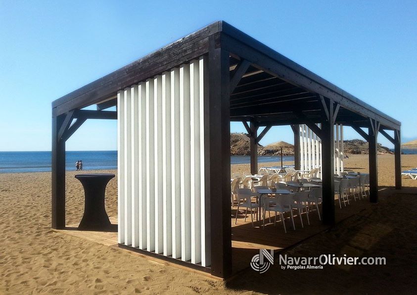 Gran parte de los clientes de Navarrolivier son empresarios del sector de la hotelería de temporada ya somos fabricantes de chiringuito y kioscos. Como complemento indispensable para este sector construimos pérgolas desmontables en madera para exterior de diferentes tipos y acabados, estructuras de simple montaje, gran durabilidad y bajo mantenimiento.