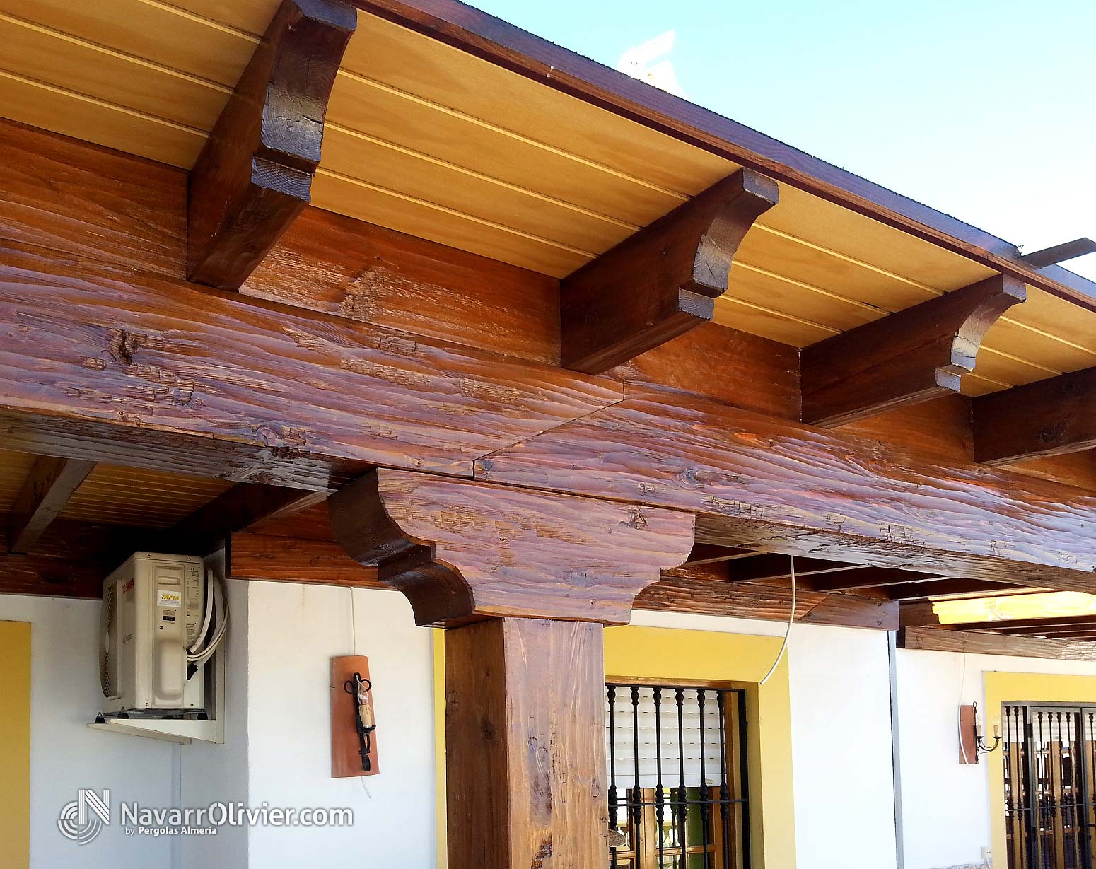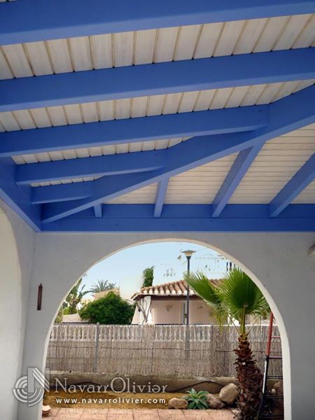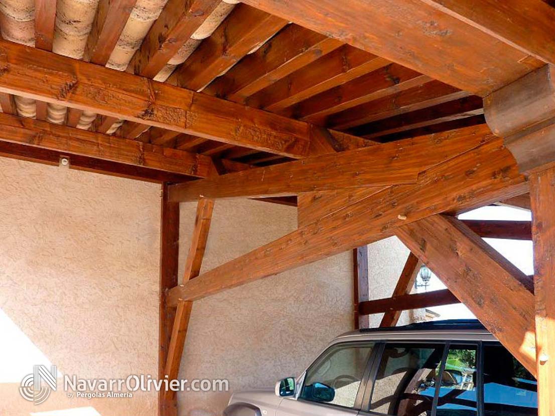 Construcción de pérgolas en madera estructural con cubierta a 2 aguas fabricadas en Almería para todo el territorio Español.