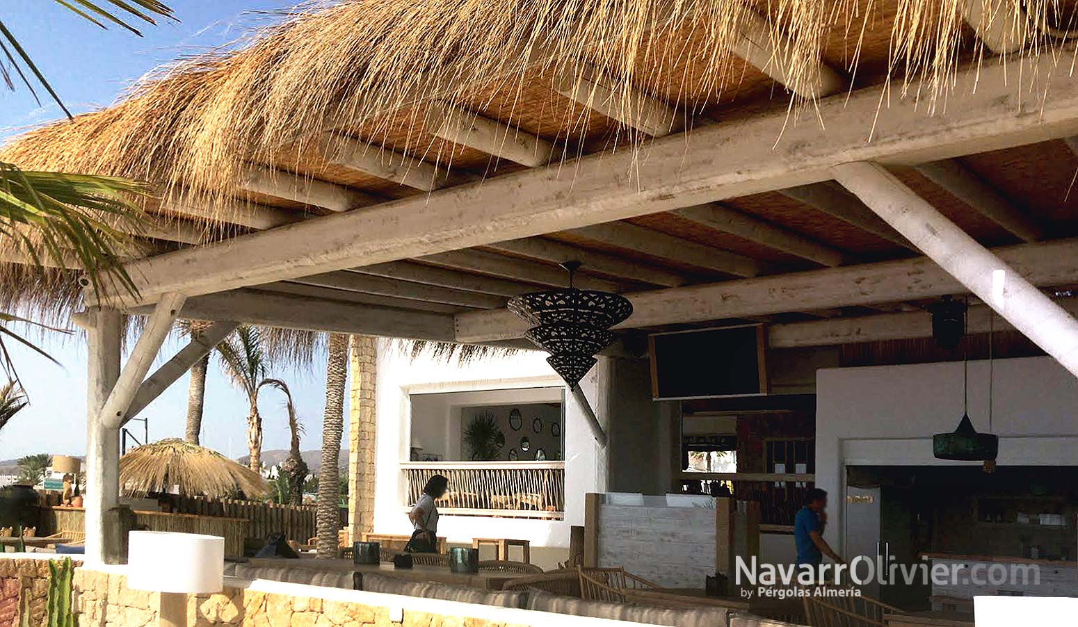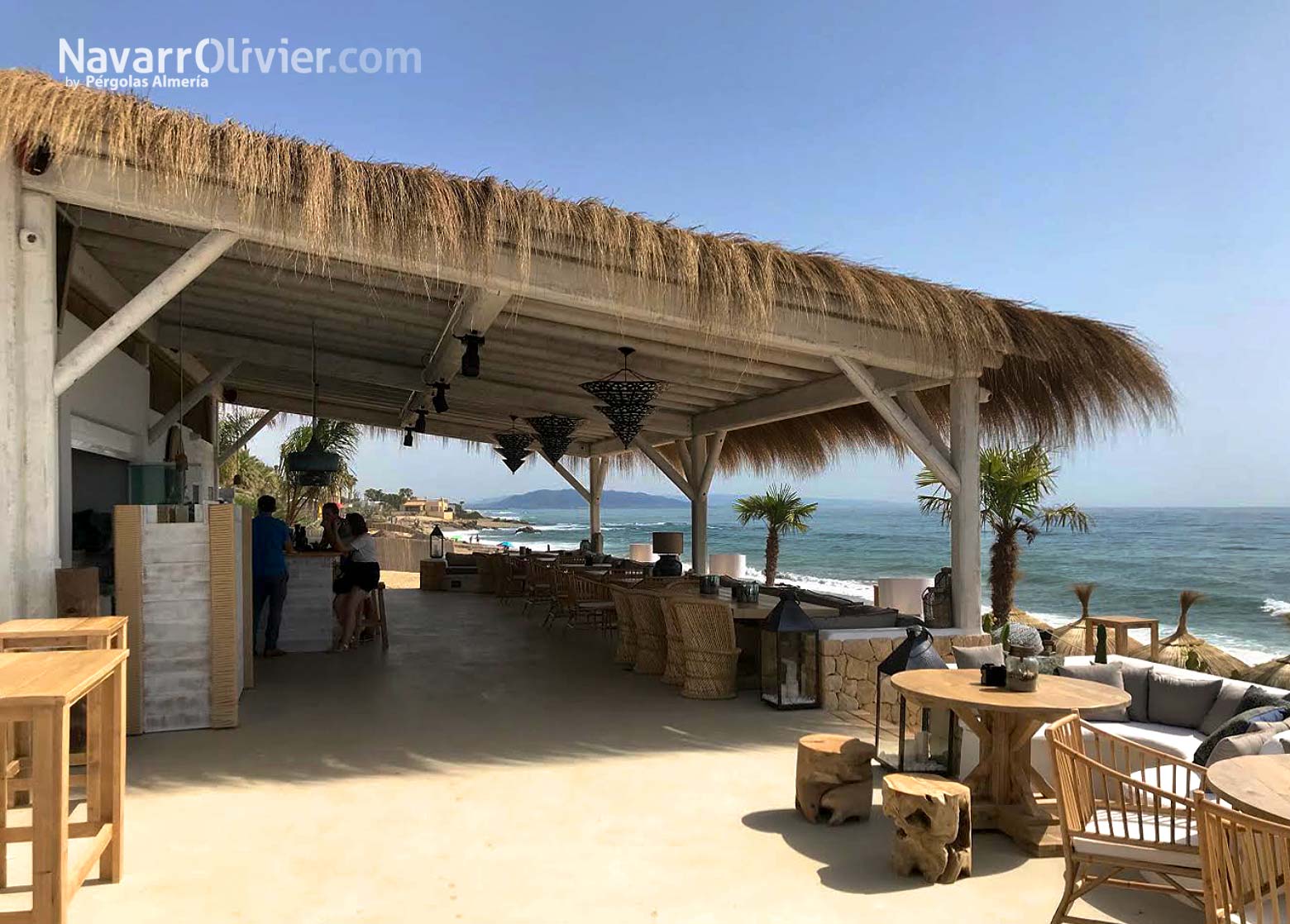 Cubierta de sombraje para terraza en primera linea de playa. Construcción de alto valor decorativo para a Playa Juana.