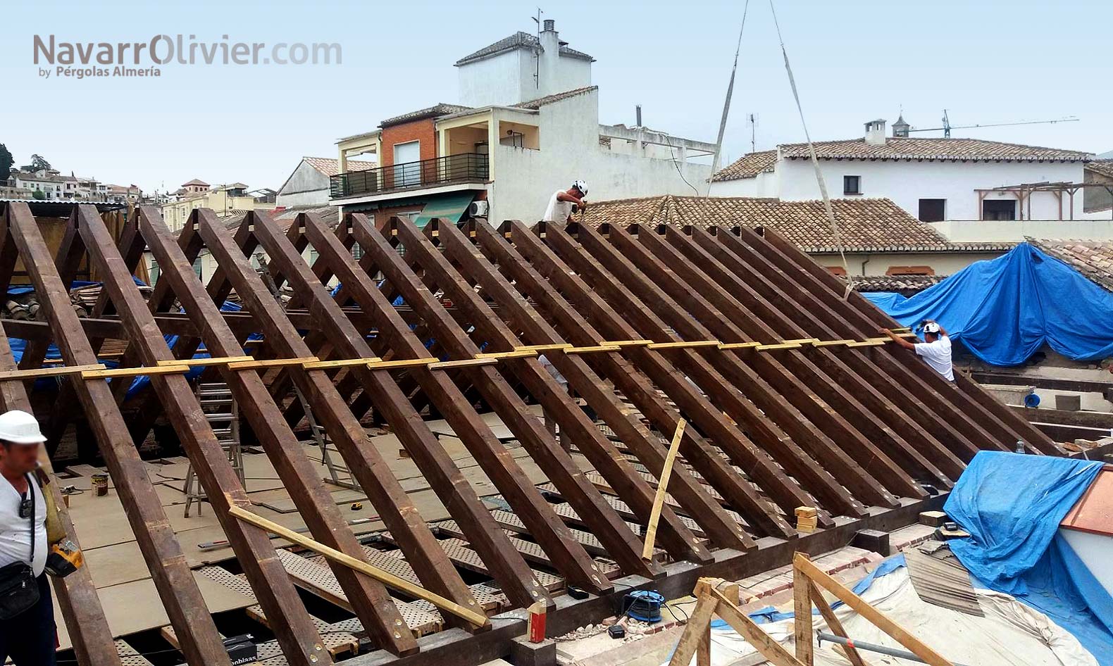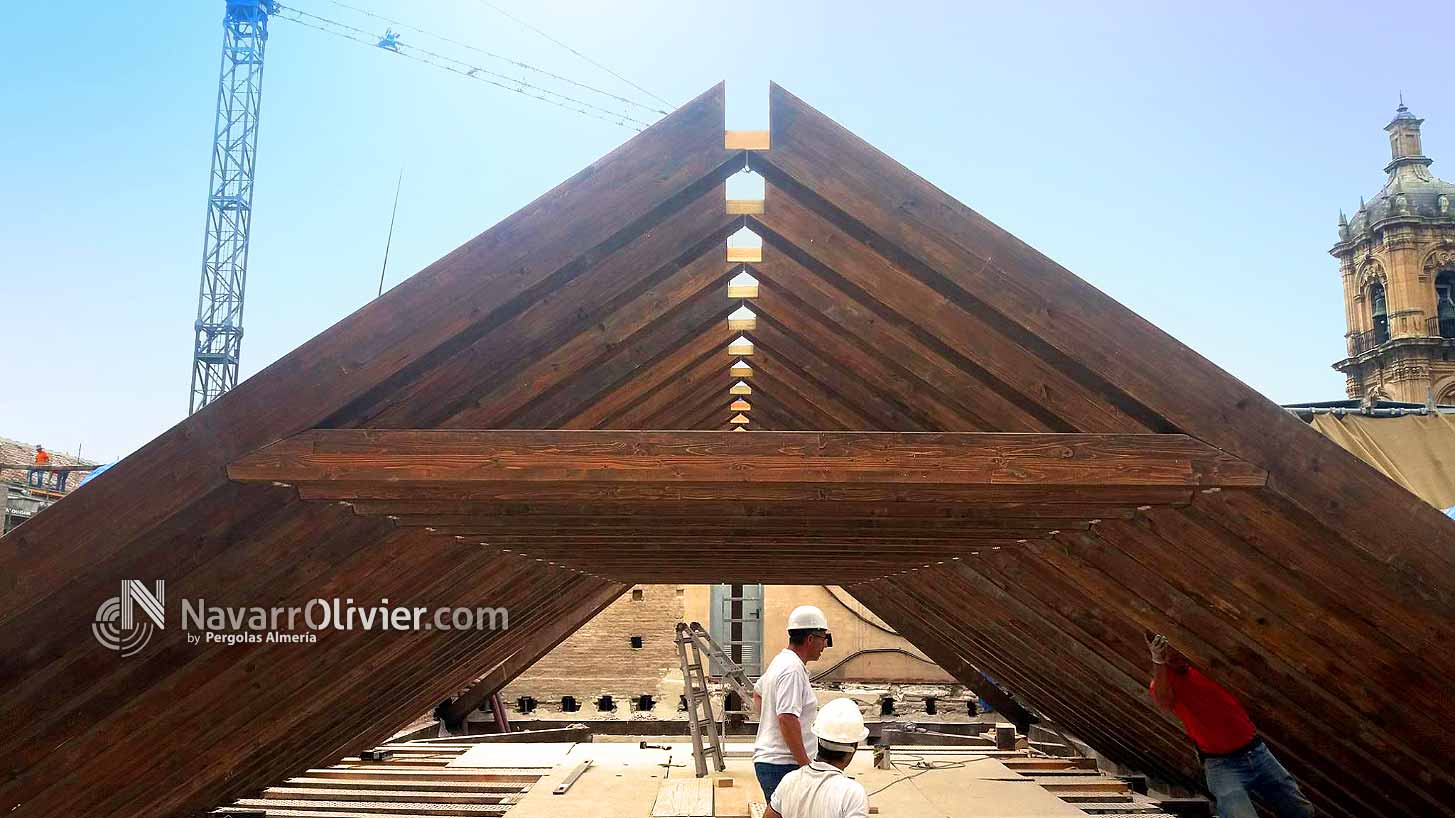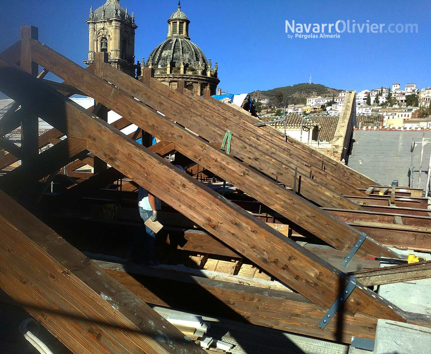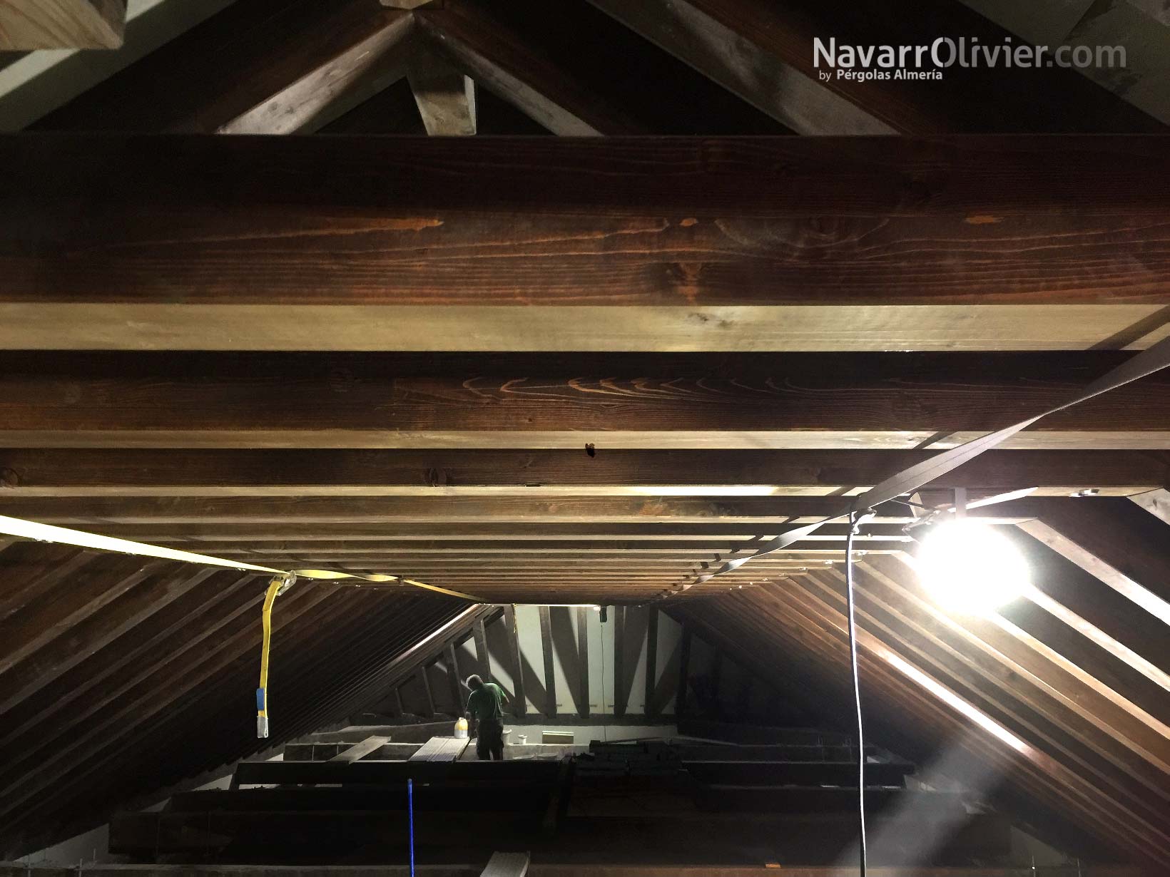 Para conservar el estilo de la edificación histórica los elementos estructurales de madera aserrada fueron reemplazados por madera laminada encolada mecanizados con los mismos ensambles y empalmes que presentaba el método constructivo original.