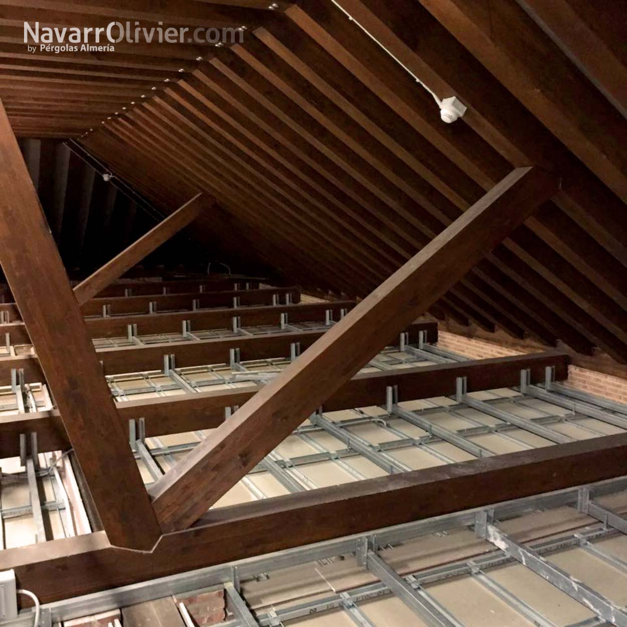 Las cubiertas rehabilitadas cuentan con un nuevo aporte en aislación con la incorporación de panel sandwich y una cámara de aire (cubierta ventilada) rematada en teja árabe.
