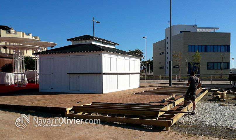 El chiringuito modular modelo Mojácar a demostrado su valía, fortaleza y durabilidad en cientos de instalaciones realizadas por todo el litoral español. Muchos de los empresarios hosteleros que optan a la obtención de una licencia para la explotación en concursos y licitaciones confían en nosotros para la preparación de su proyecto. Contamos con un servicio de atención al cliente preparado para ofrecerle las soluciones necesarias, ya sea documentación técnica, asesoramiento o presupuestos en el menor tiempo posible. Puede contactar con nosotros llamando al +34 687 03 15 65 por e-mail o desde el formulario le atenderemos en Español, Ingles, Francés o Alemán.