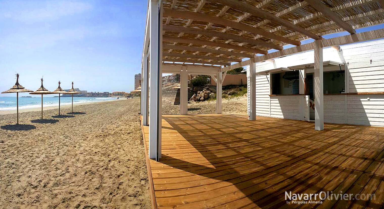 Módulos y estructuras de madera especialmente pensados para ser utilizados en el exterior. Equipamiento de playa para empresarios, instituciones y particulares. Disponemos de gran variedad de instalaciones preparadas para ambiente marítimo equipadas con instalación eléctrica, sanitaria y con posibilidades de personalización según su uso lo requiera. Infraestructuras accesorias para hostelería de playa como aseos modulares accesibles adaptados para conexión a redes pública, químicos o autónomos. kioscos accesorios para dar servicio a terrazas de verano de bares restaurantes. Pérgolas de sombraje desmontables estándar o a medida con diferentes acabado y variedad de cubiertas sintéticas o naturales como brezo, mimbre, cañizo, alistonado de madera o toldos abatibles. Suelos fijos o desmontables en tarima de madera ranurada antideslizante y pasarelas fijas o enrrollables. Modelos adecuados a la estética que buscas, proyectos compatibles con los estándares solicitados por ayuntamientos e instituciones, contamos con amplia experiencia e instalaciones en toda la costa española.