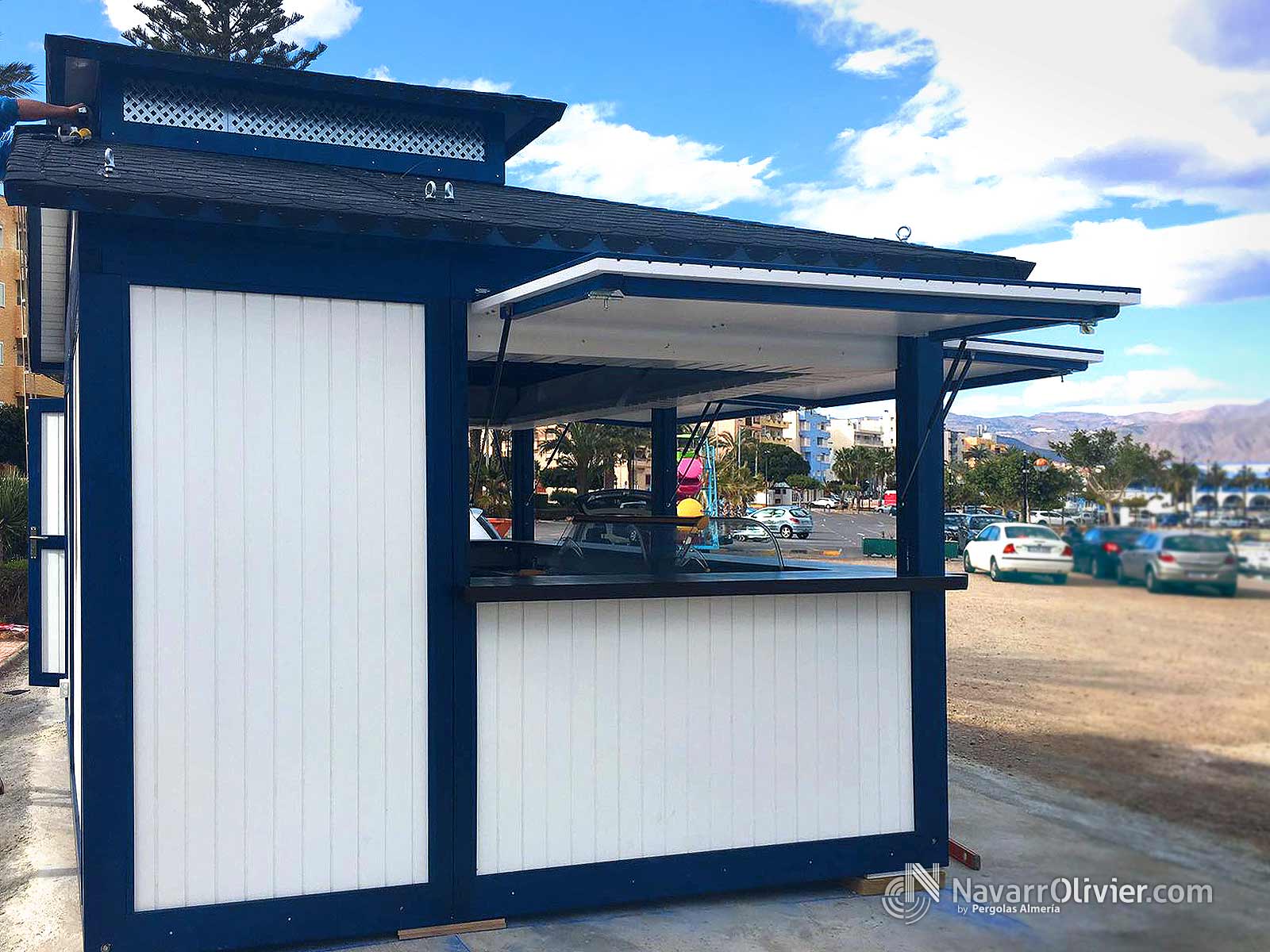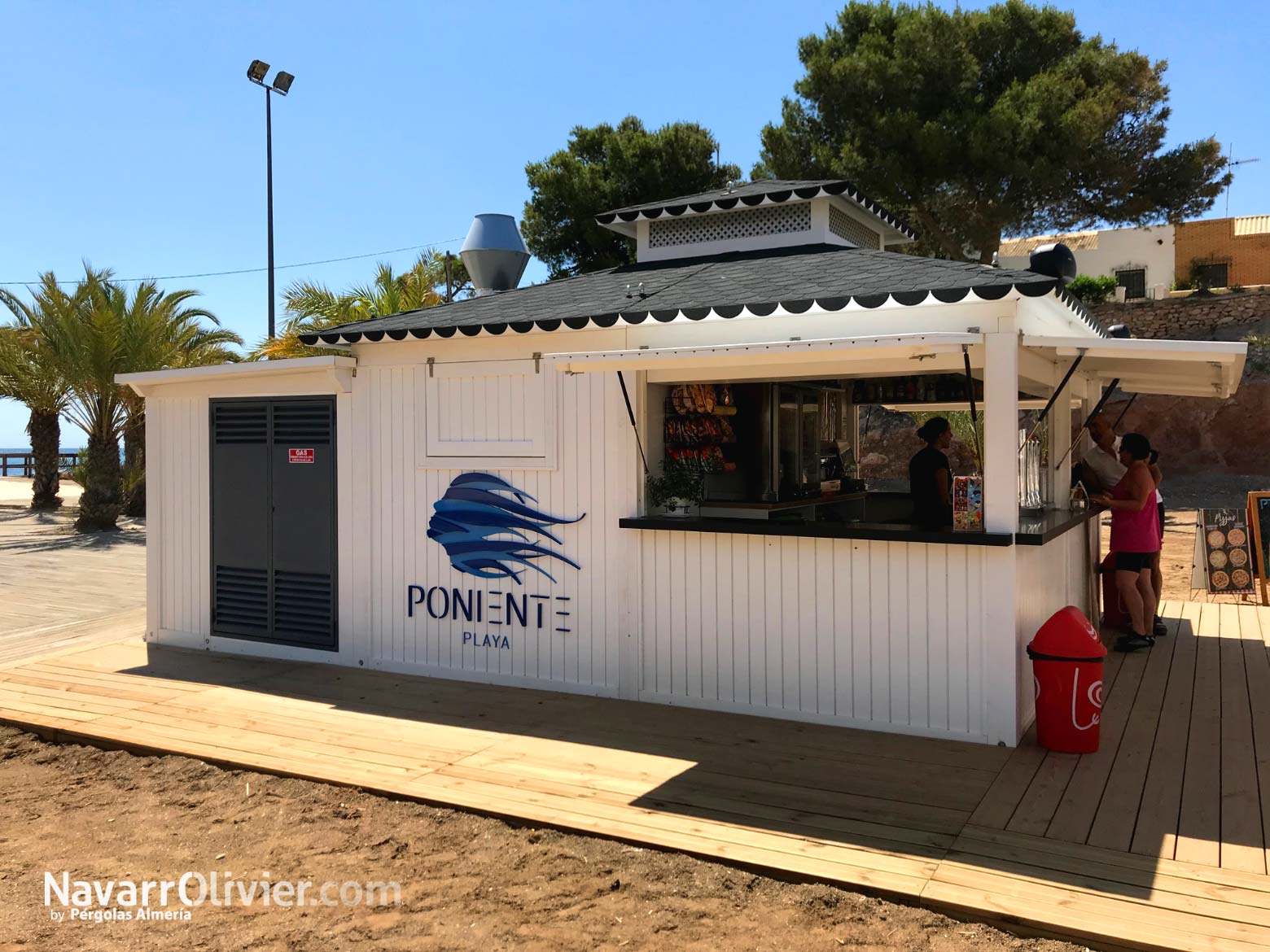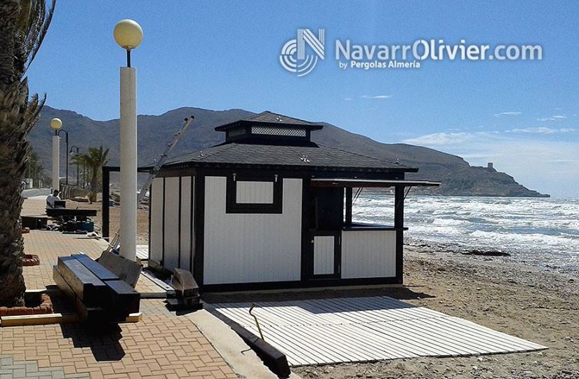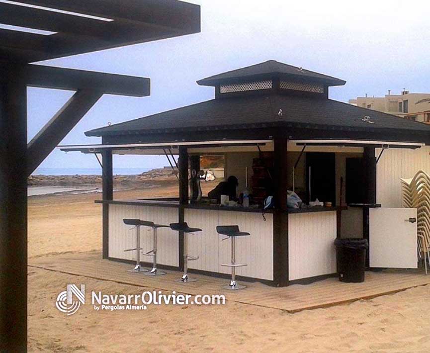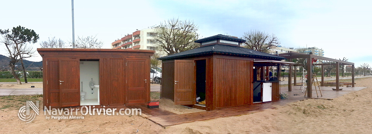 Módulos de madera especialmente pensados para ser utilizados en el exterior. Equipamiento de playa para empresarios, instituciones y particulares. Chiringuitos preparados para ambiente marítimo equipados con instalación eléctrica, sanitaria y con posibilidades de personalización según su uso lo requiera.