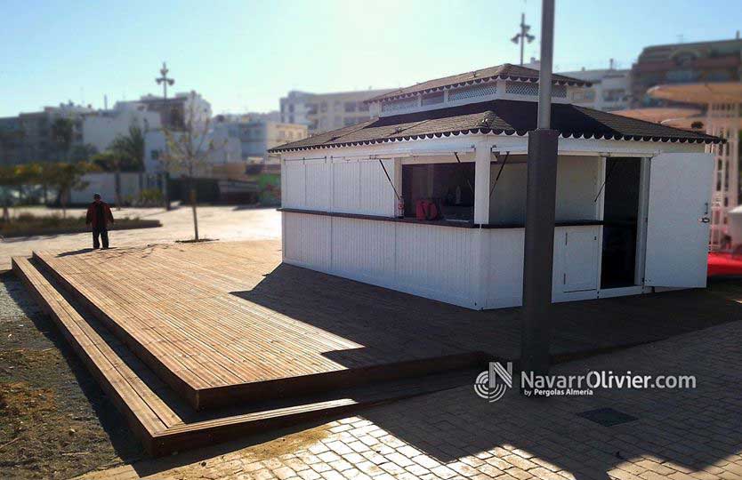 Construcción de módulos de madera transportable para hostelería de playa. Fabricación y montaje de equipamiento en madera para playa y úrbanos.