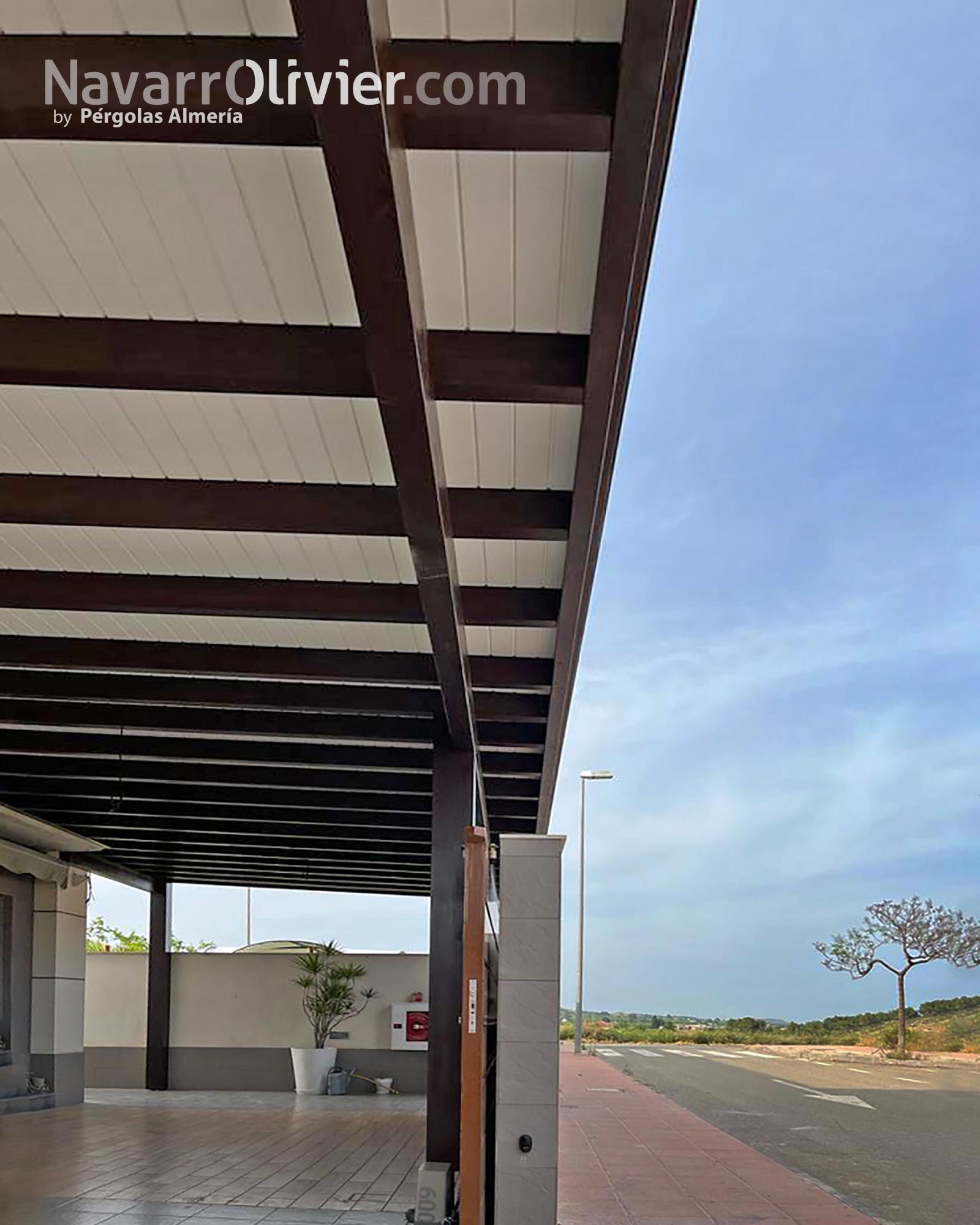 Pérgola de madera para patio delantero de vivienda en Totana, Región de Murcia.